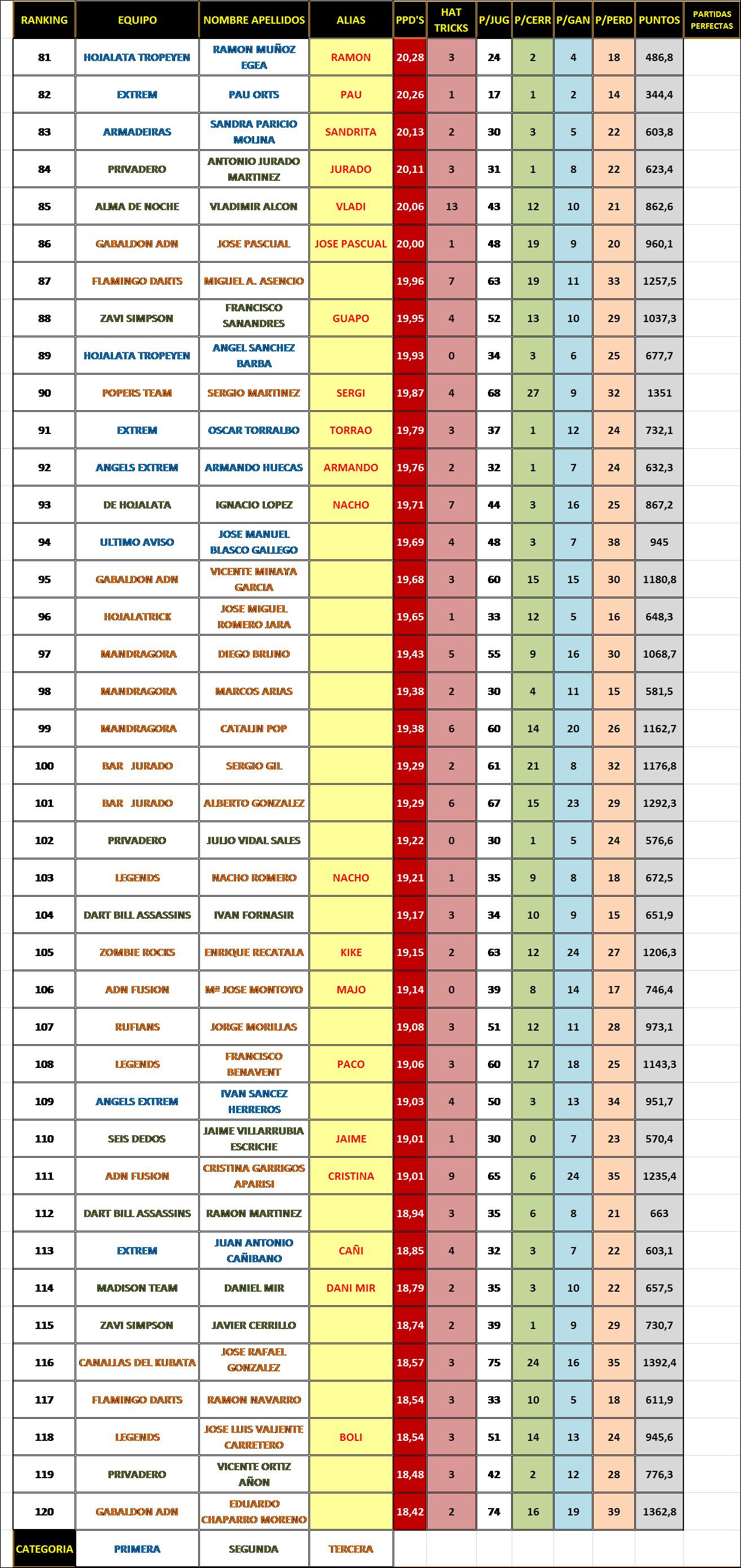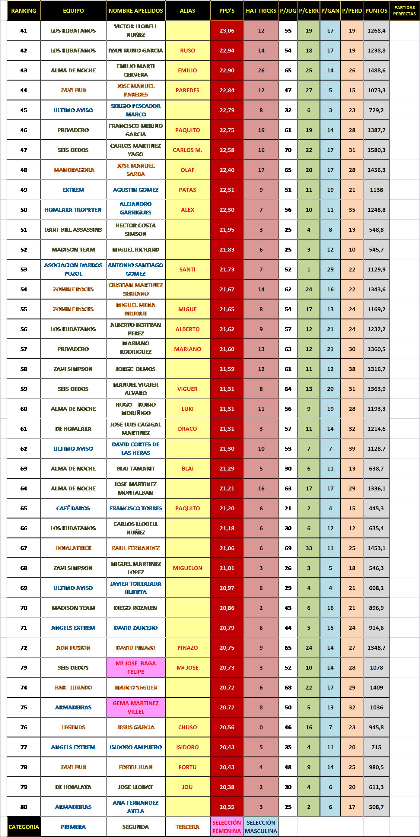CLASIFICACION INDIVIDUAL (PPD´S)
