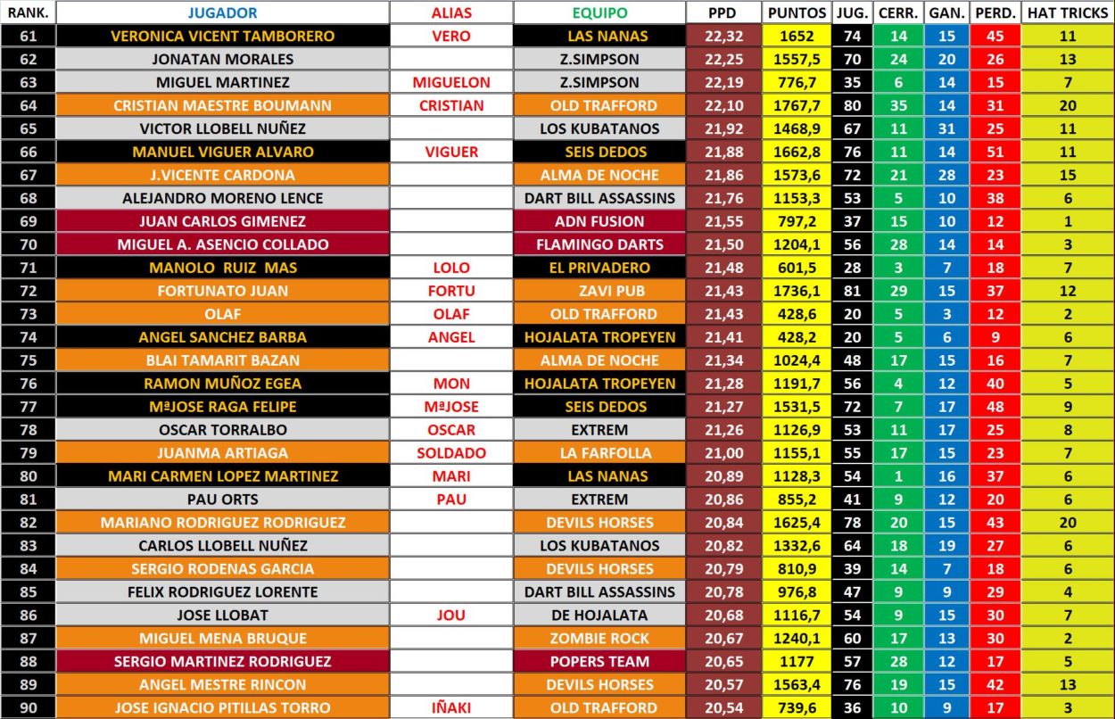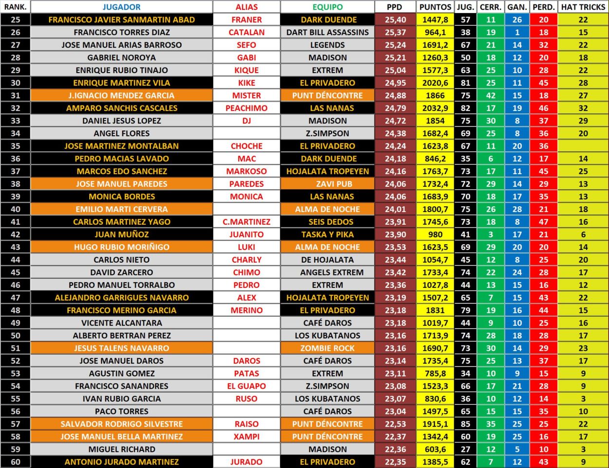 CLASIFICACION INDIVIDUAL (PPD´S)