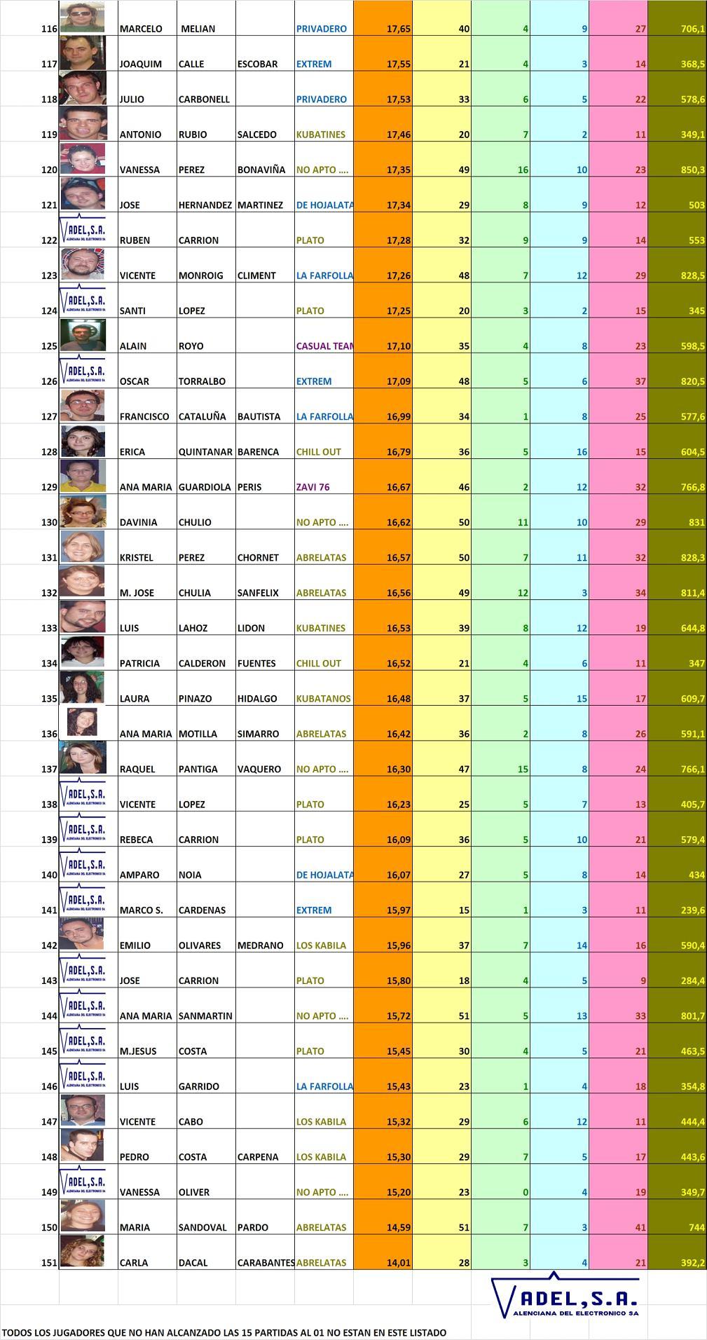 CLASIFICACIÓN INDIVIDUAL (PPD's)