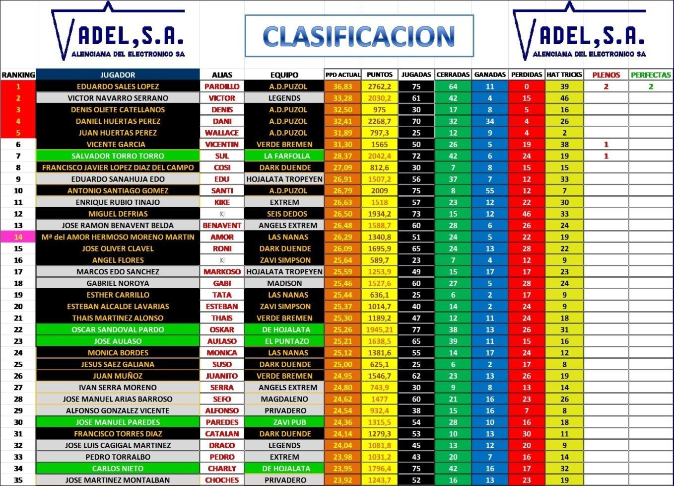 CLASIFICACIÓN INDIVIDUAL (PPDs)