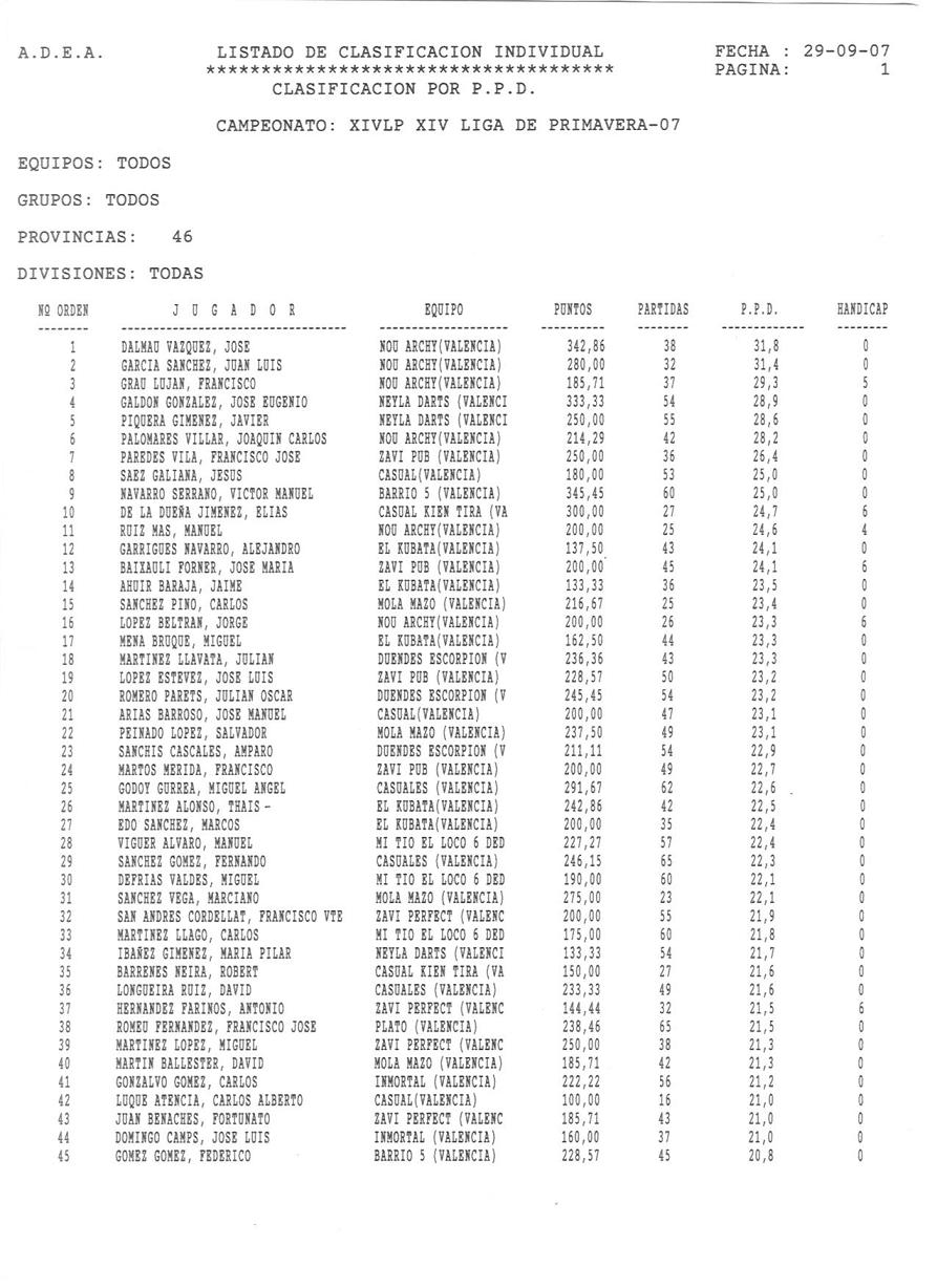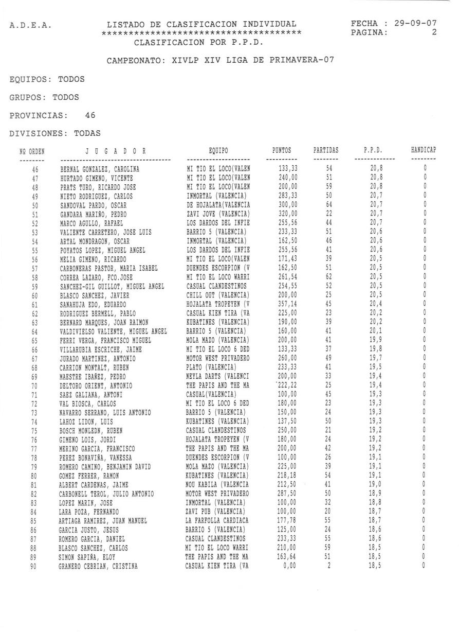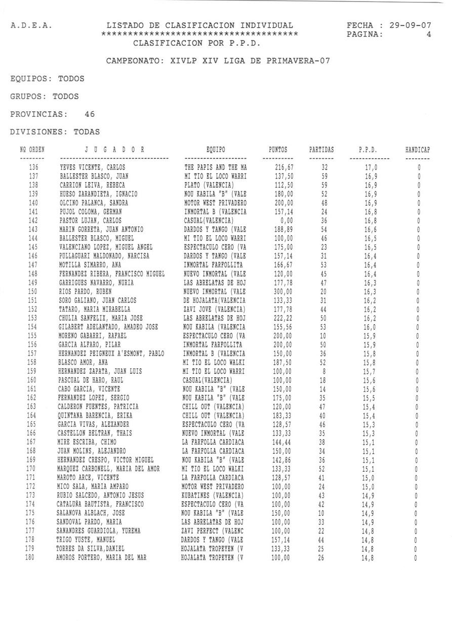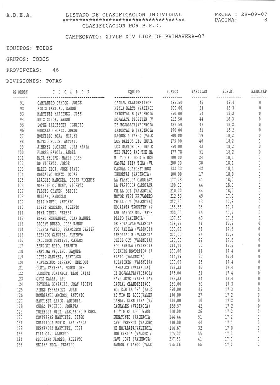 CLASIFICACIÓN INDIVIDUAL (PPD's)