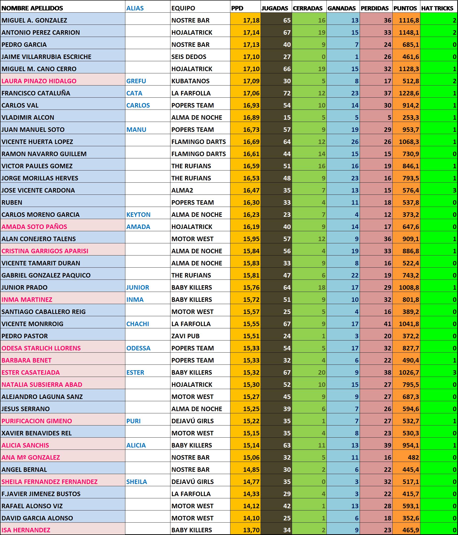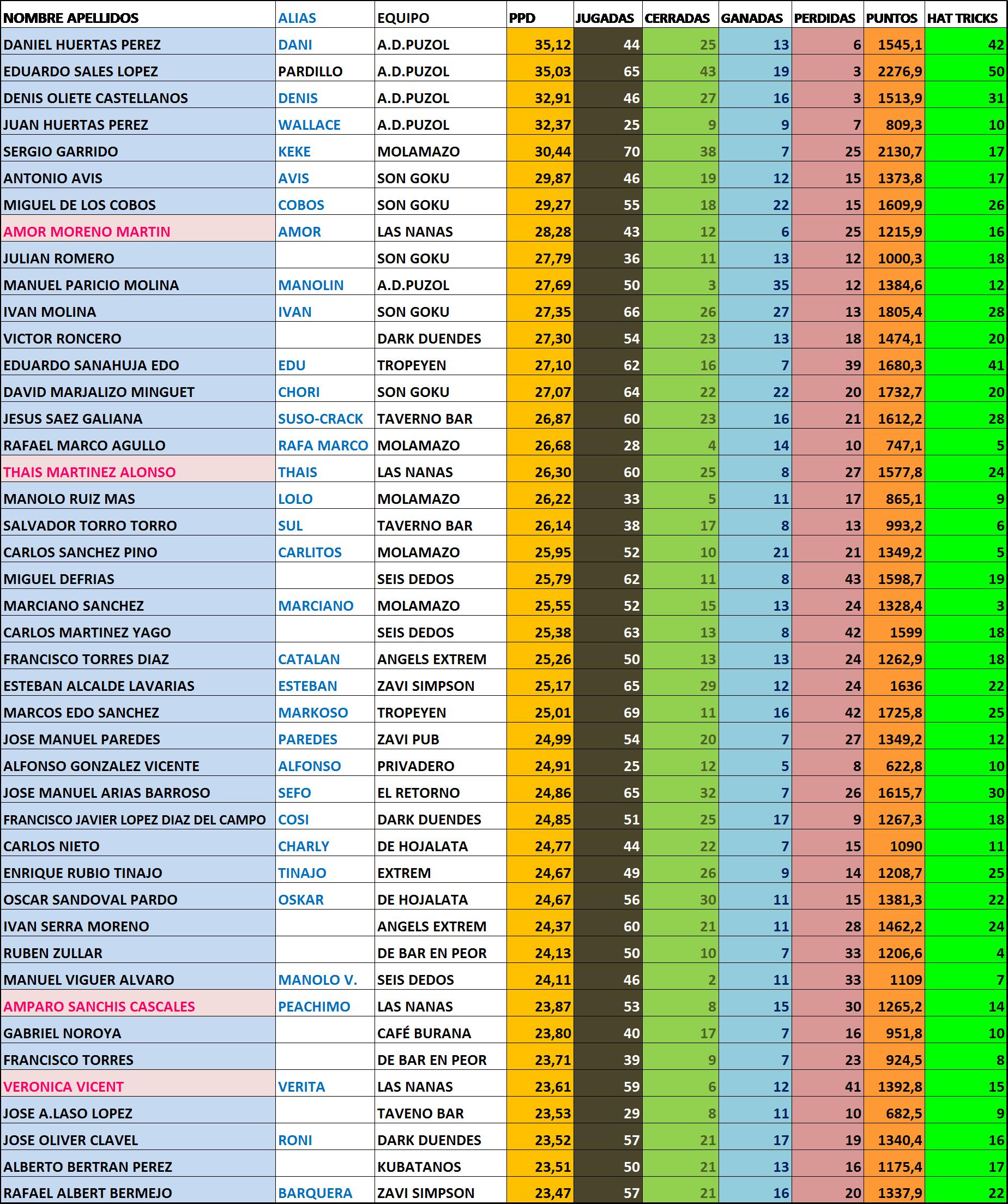 CLASIFICACIÓN INDIVIDUAL (PPDs)