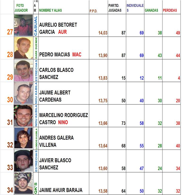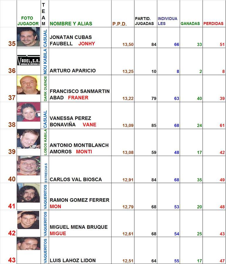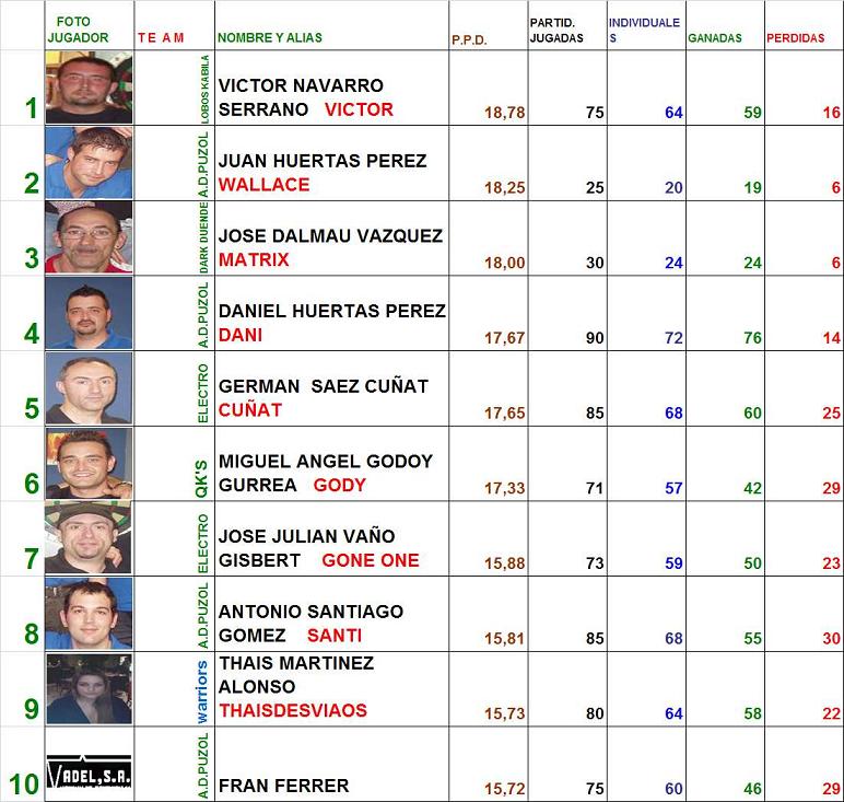 CLASIFICACIÓN INDIVIDUAL (PPD's)